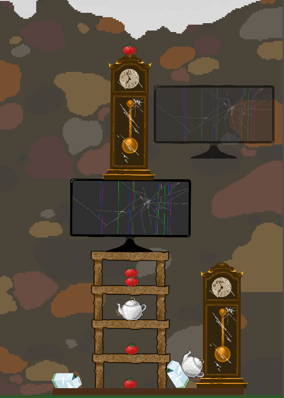 Place the belongings on top of each other and find the balance to make sure your tower doesn't collapse. In order to maximize your score, you'll definitely need to do some strange placements.